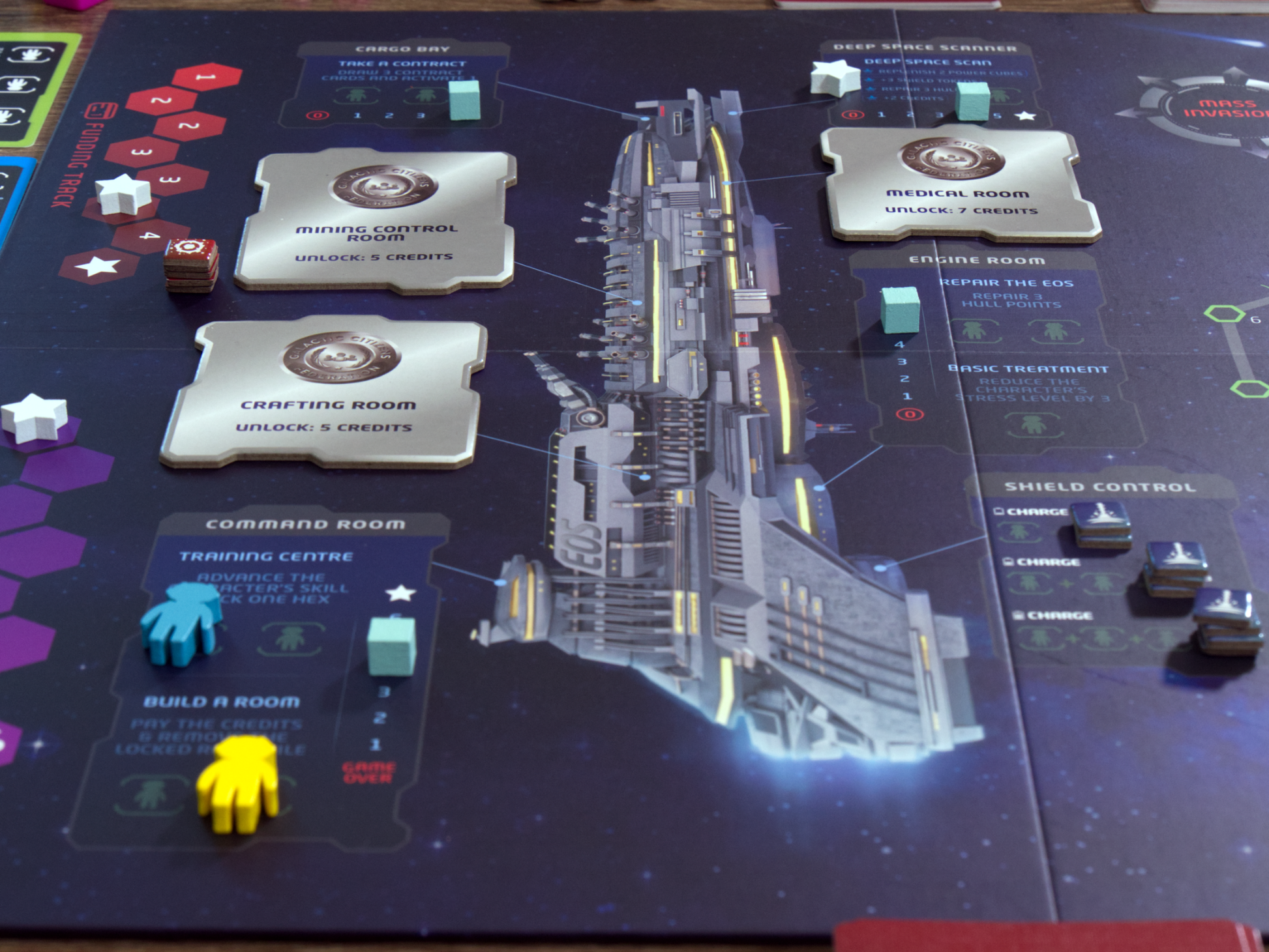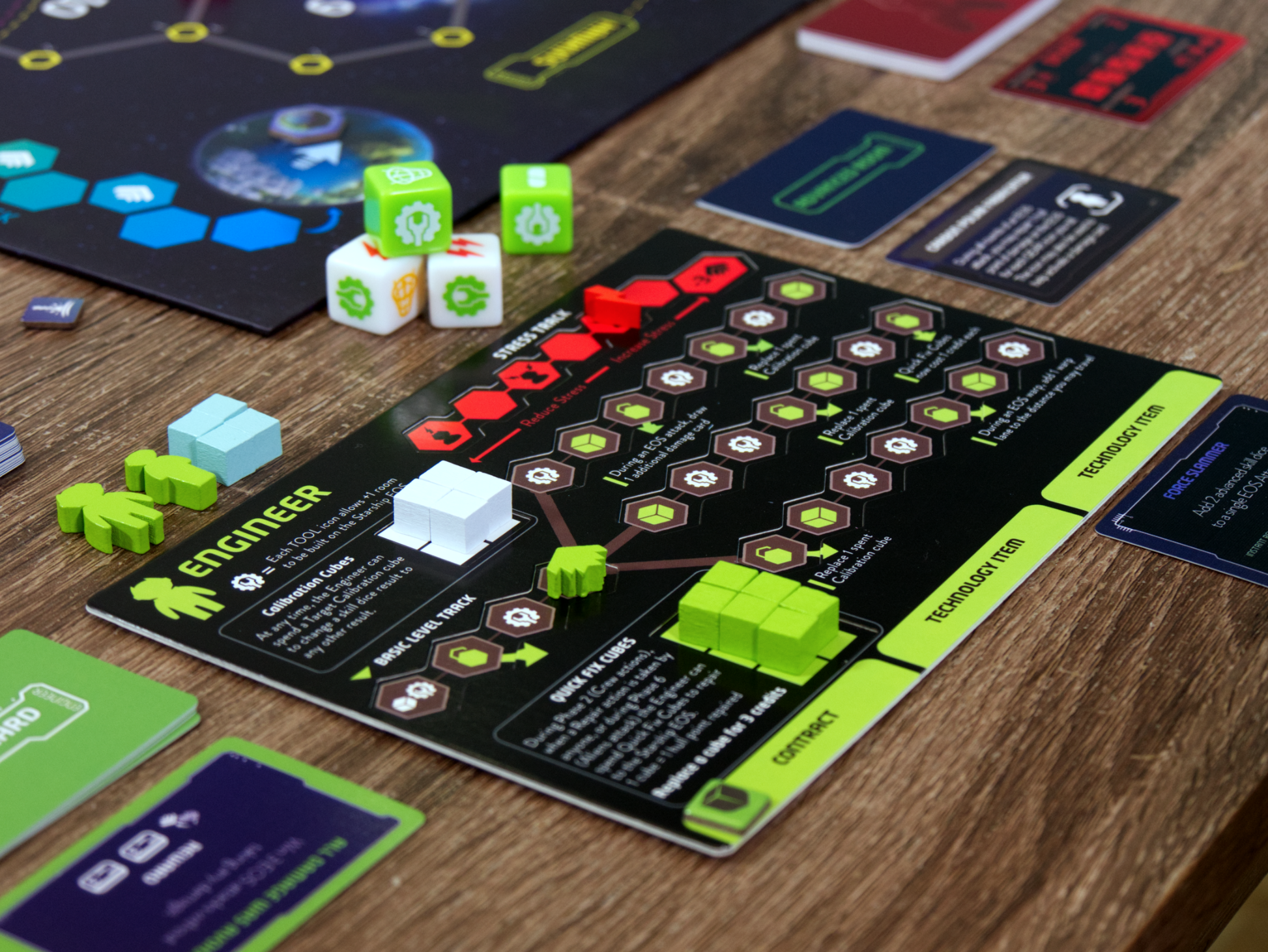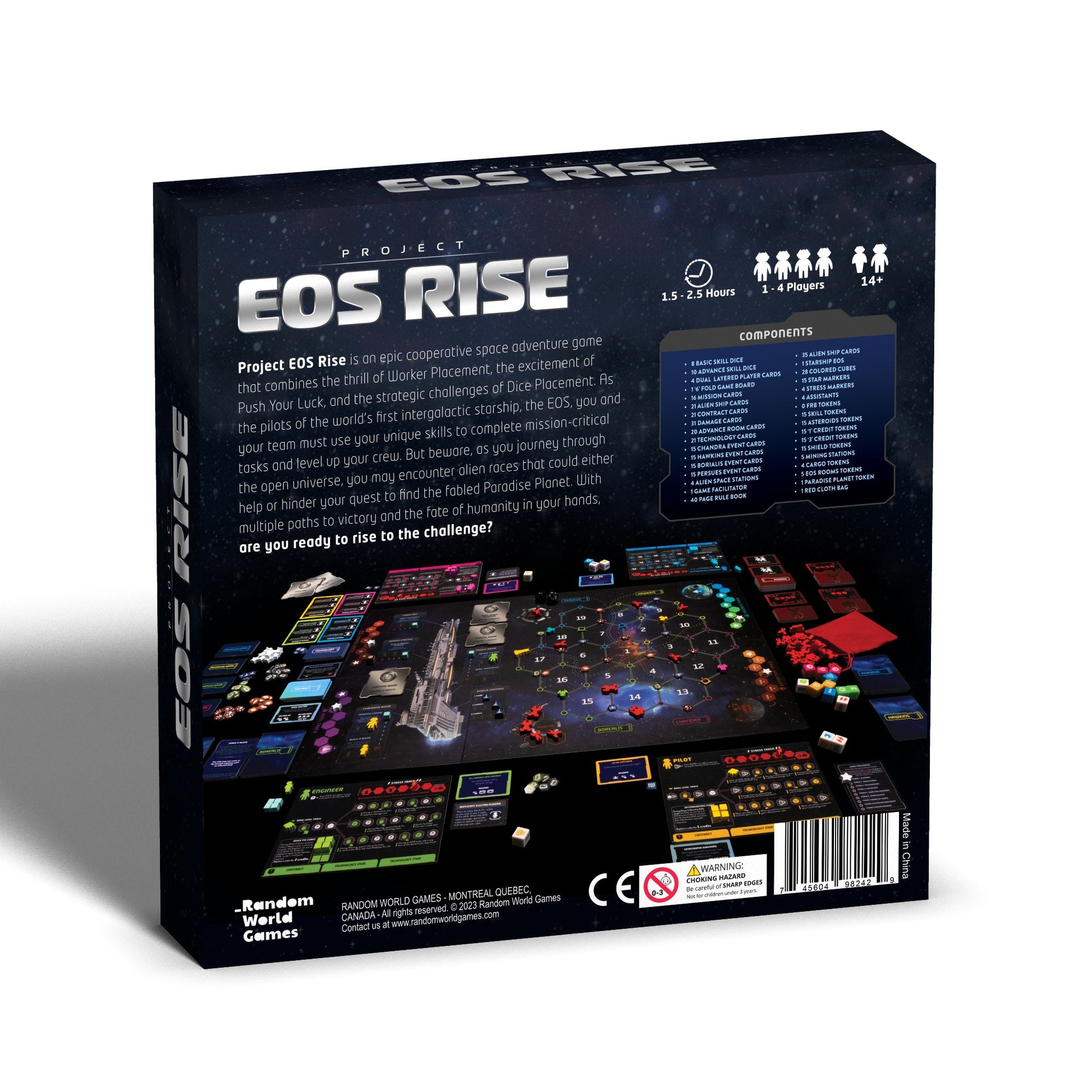 Project EOS Rise is a cooperative space adventure game that blends Worker Placement, Push Your Luck, and Dice Placement mechanics. As pilots aboard the intergalactic starship EOS, you and your crew will use your unique skills to complete critical missions, level up, and navigate the vast universe. Along the way, you'll encounter alien races that may help or hinder your quest to reach the fabled Paradise Planet. With multiple paths to victory, the fate of humanity is in your hands—are you ready to rise to the challenge?